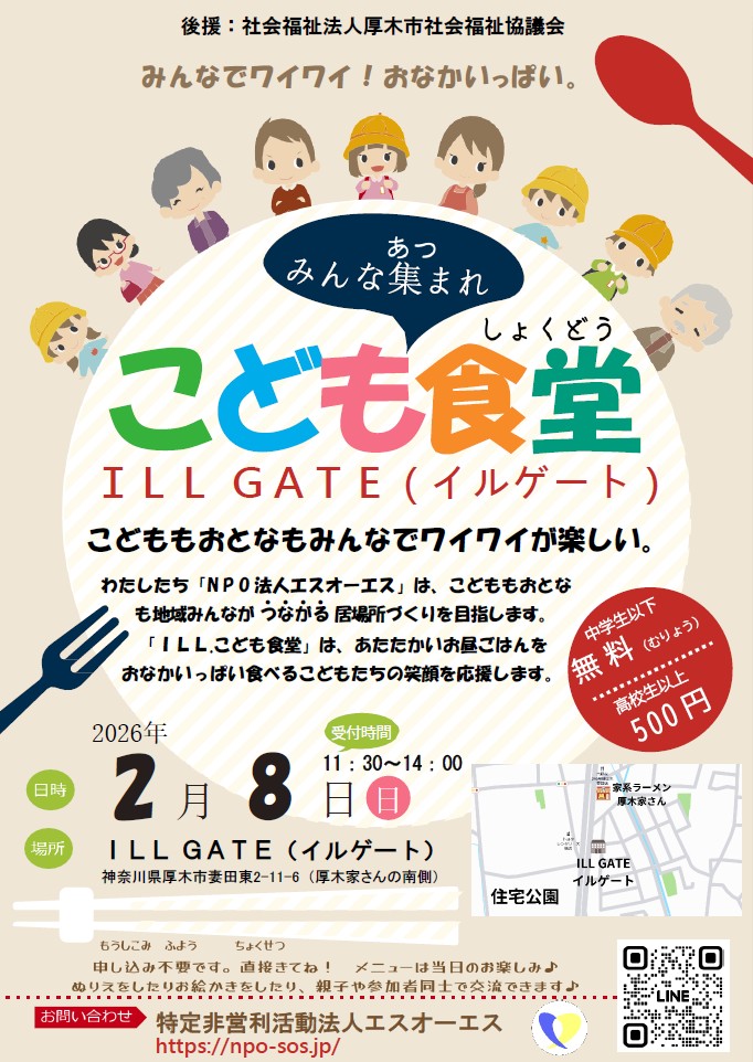 ※LINE公式アカウントを作成致しました。友だち追加して「こども食堂」の開催情報や、「よろず相談所」の個別相談にご利用ください。