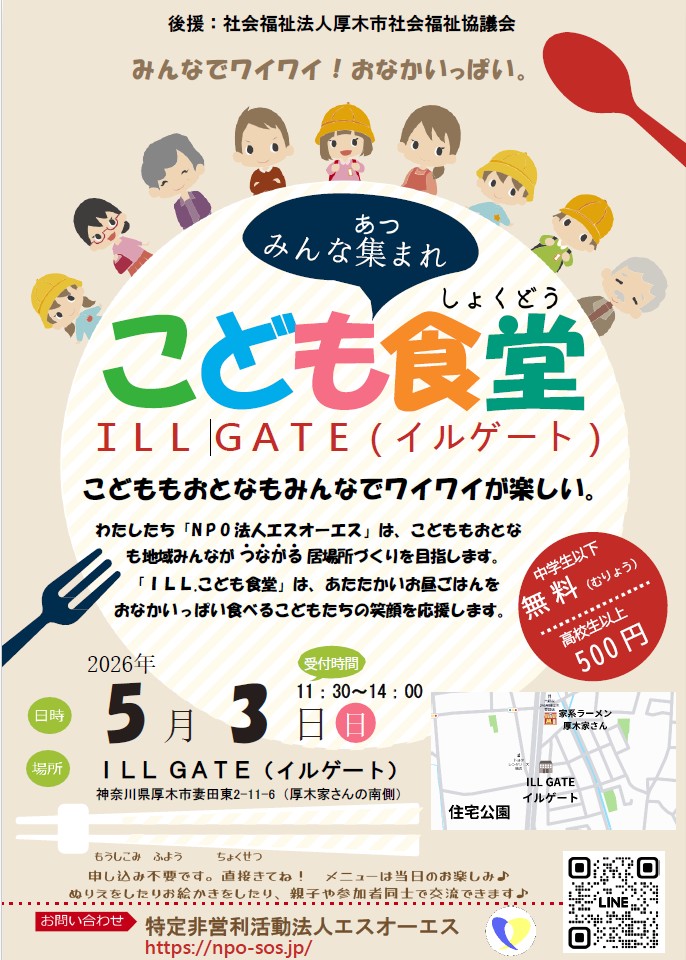 ※LINE公式アカウントを作成致しました。友だち追加して「こども食堂」の開催情報や、「よろず相談所」の個別相談にご利用ください。